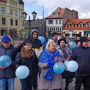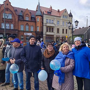 Następnie odbył się marsz z boiska SOSW. Każdy z uczestników miał ze sobą niebieski element stroju na znak solidarności z osobami z autyzmem. Marsz odbył się wzdłuż ulic: Parkowa, Topolowa, Powstania Wielkopolskiego, Św. Ducha, Rynek, gdzie nastąpiła część artystyczna całego przedsięwzięcia. Najpierw głos zabrała p.dyrektor Specjalnego Ośrodka Szkolno-Wychowawczego Anna Rychlewska, która powitała zebranych uczniów, przedszkolaków Ośrodka oraz okolicznych szkół i przedszkoli z terenu gminy Strzelno, zebranych gości i mieszkańców.