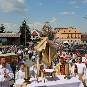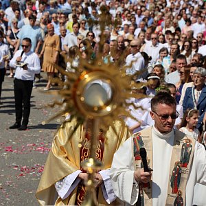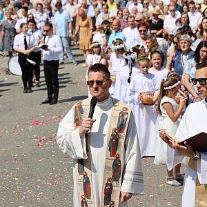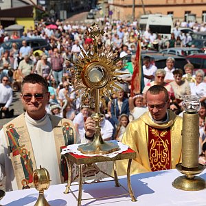 Podczas procesji, kapłan niesie monstrancję z Najświętszym Sakramentem, podążając za pielgrzymami, którzy śpiewają pieśni religijne. Wielu wiernych towarzyszy procesji w tradycyjnych strojach ludowych, co dodaje uroku i koloru temu świątecznemu wydarzeniu.