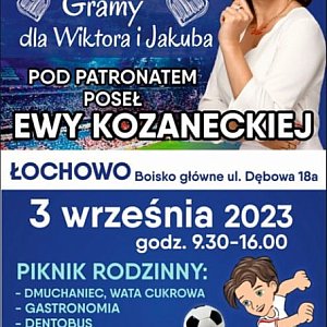 Dziś odbył się turniej piłkarski pod patronatem poseł Ewy Kozaneckiej w Łochowie, w którym uczestniczyło 10 drużyn, w tym dzieci z naszej gminy: UKS Olimp i LZS Kujawy Markowice. Była dobra zabawa, a także szczytny cel — zbiórka na chore dzieci — Wiktora i Jakuba. Drużyny reprezentujące naszą gminę spisały się na medal, trenerzy są dumni ze swoich podopiecznych. Pani poseł otrzymała od UKS Olimp szalik klubu.