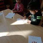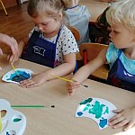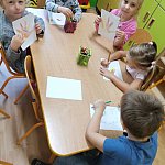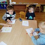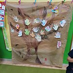 Dzieci przypomniały sobie kodeks przedszkolaka i przybił piątkę "na kartkę papieru, co oznaczało akceptację zasad. Później rączki naszych przedszkolaków przemieniły się w kolorowe jesienne liście, które powędrowały na wspólnie stworzone drzewo.