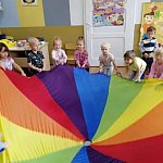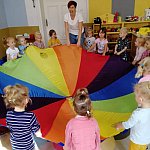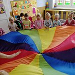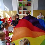 W Przedszkolu nr 1 najmłodsze dzieci rozpoczęły swoją niesamowitą przygodę w grupie SÓWEK . Były wesołe zabawy z chustą animacyjną, pierwsze prace plastyczne.