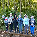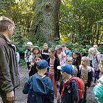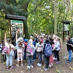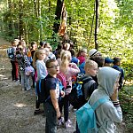 Z wielkim zainteresowaniem poznawaliśmy tajniki ścieżki dydaktycznej, objaśnianej nam przez pana leśnika Pawła Wesołowskiego. Poznaliśmy warstwy lasu i odpowiadające im rośliny oraz ciekawostki z życia zwierząt.