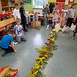23 września uczniowie z klasy 1 i 2 świętowali Pierwszy Dzień Jesieni. Z tej okazji każda klasa wykonała piękny kolorowy dywan z darów jesieni. Natomiast klasa 3 była na wycieczce w lesie w poszukiwaniu Pani Jesieni i jej jesiennych darów.