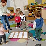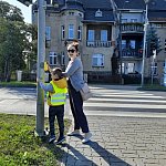 Niedźwiadki, Sówki, Liski i Sarenki - grupy przedszkolaków ze SP im. A. A. Michelsona uczyły się w ostatnich dniach bezpiecznego poruszania po drodze oraz korzystania z sygnalizacji świetlnej pod okiem opiekunów.