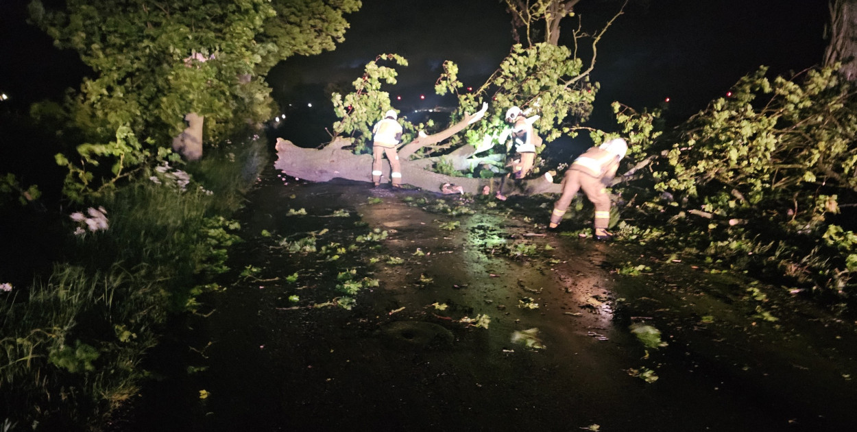 Zgłoszenie dotyczyło powalonego drzewa blokującego przejazd na drodze powiatowej w pobliżu miejscowości Górki. Strażacy zabezpieczyli miejsce zdarzenia i przystąpili do usunięcia przeszkody. Działania zakończono bez dodatkowych utrudnień.
